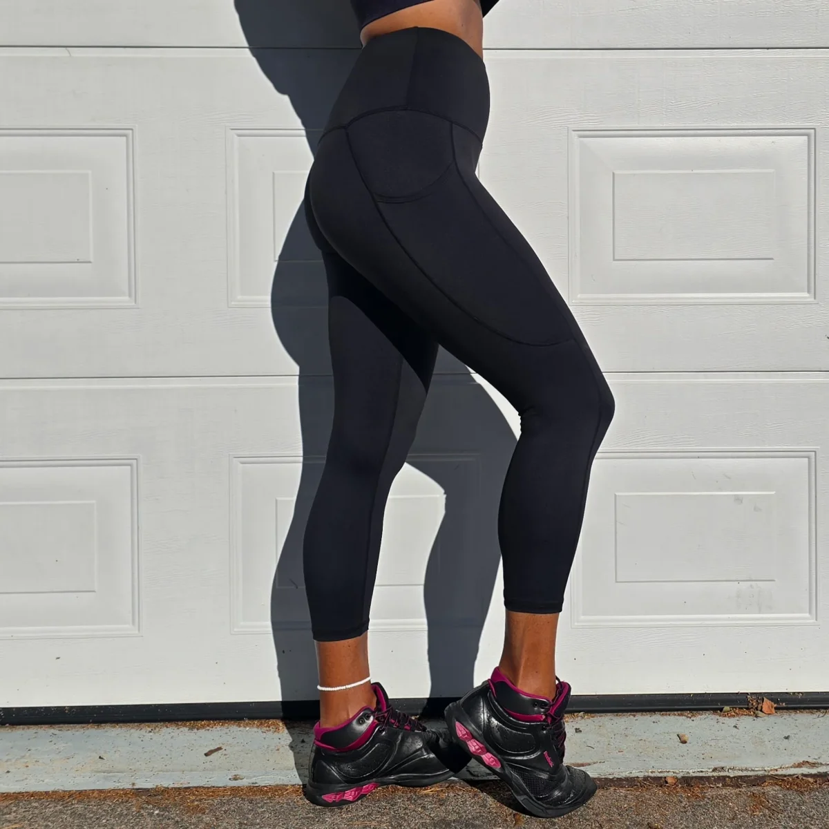Svarta 7/8 tights med extra hög midja har 2 mobilfickor och en liten nyckelficka. Våra leggings är aldrig genomskinliga och de rullar inte ned när du rör på dig. De passar all typ av träning och används ofta till vardags eftersom de är så sköna. Hitta din storlek HÄR.