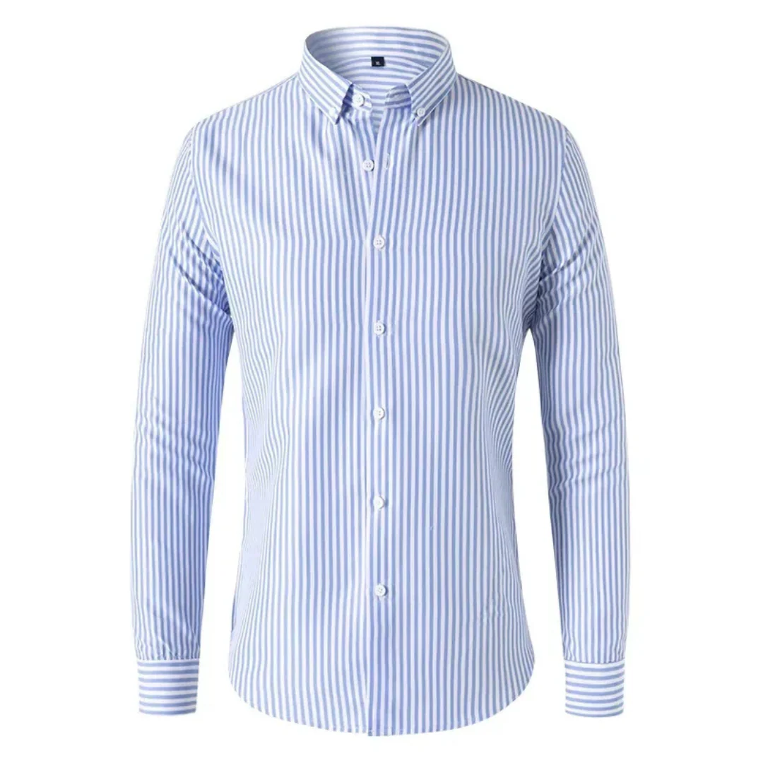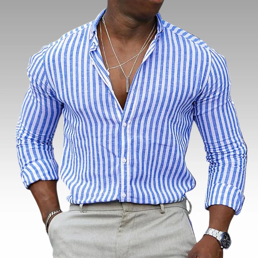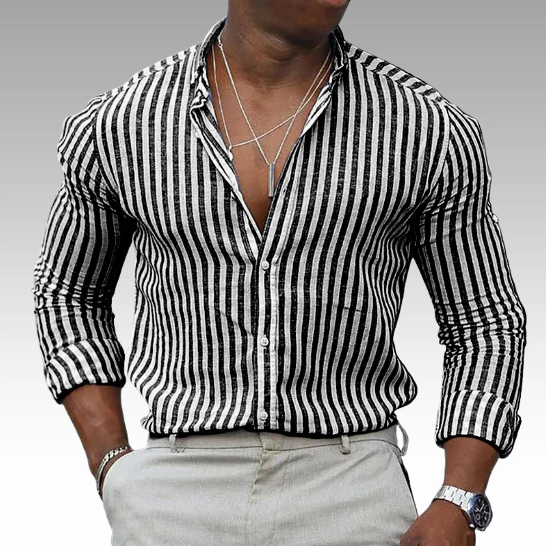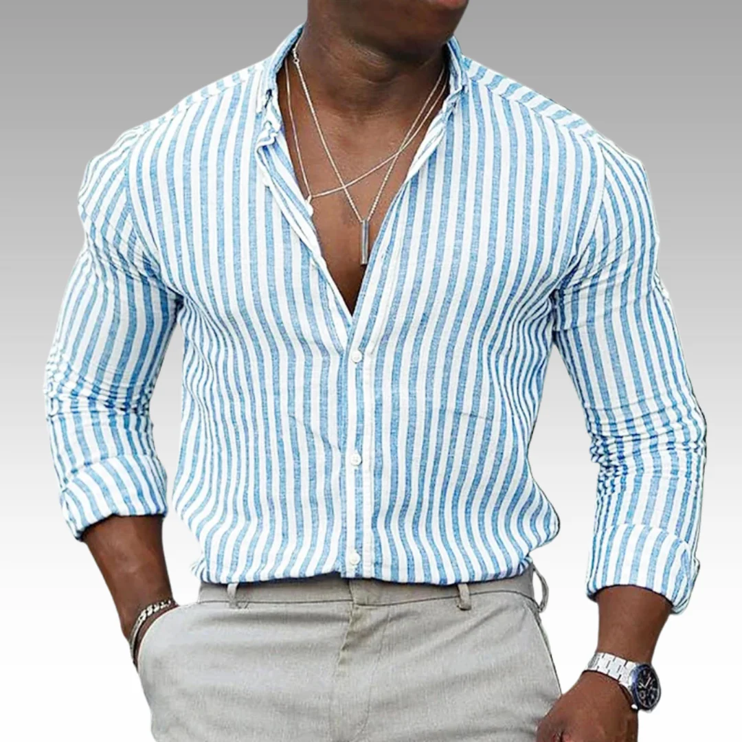 Timo herrskjorta med ränder är designad för män som värdesätter elegans och komfort utan kompromisser. Den smala passformen och det vertikala randmönstret skapar en modern look – både till vardags och på jobbet.