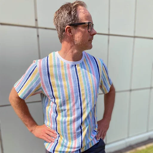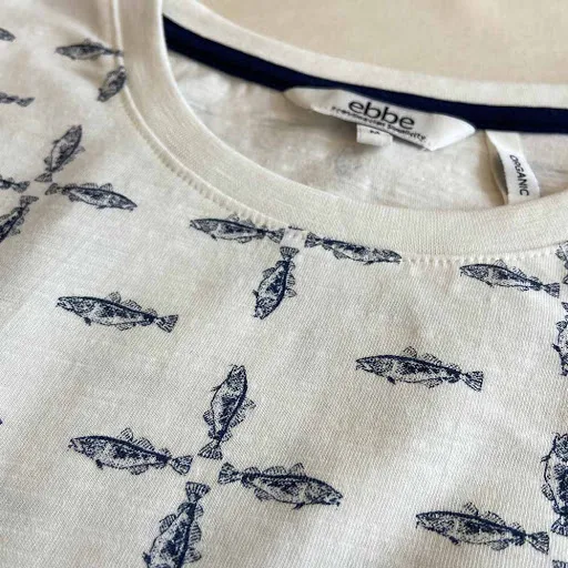 T-shirt med kort ärm till herr med somriga och marina tryck. Hållbart tillverkad av 100% ekologisk bomull.