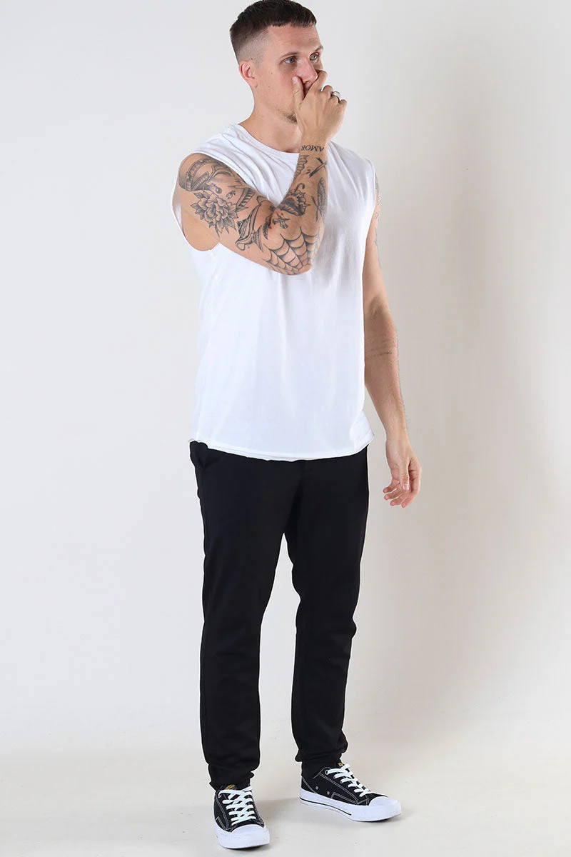 Urban Classics T-shirt utan ärmar. Kommer i vit färg med ribbad kant vid hals utskärningen. Trendy detaljer med rippad utskärning vid ärmarna och i botten av skjortan. Kvalité: 100% bomull.