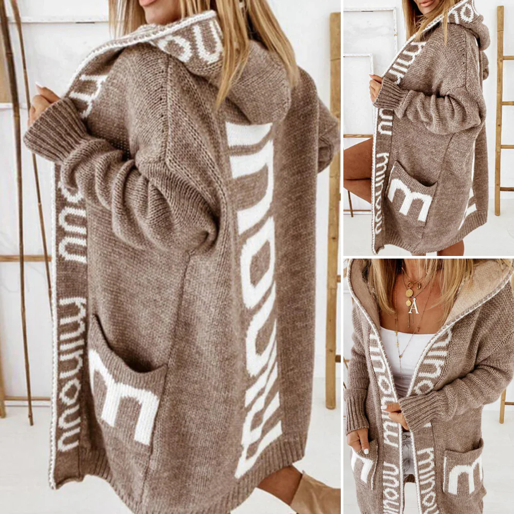 Vendela är mer än bara en kofta – det är känslan av trygghet och stil i ett plagg. Den långa, löst sittande designen med luva omsluter dig i värme under kyliga dagar, medan det moderna bokstavsmönstret ger en trendig touch. Perfekt att kasta över jeans, leggings eller klänning för en avslappnat chic look.
