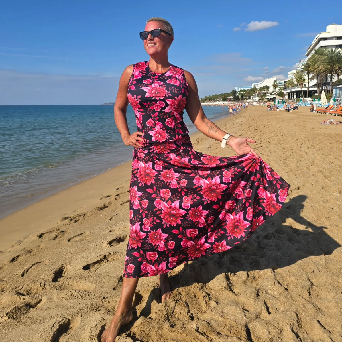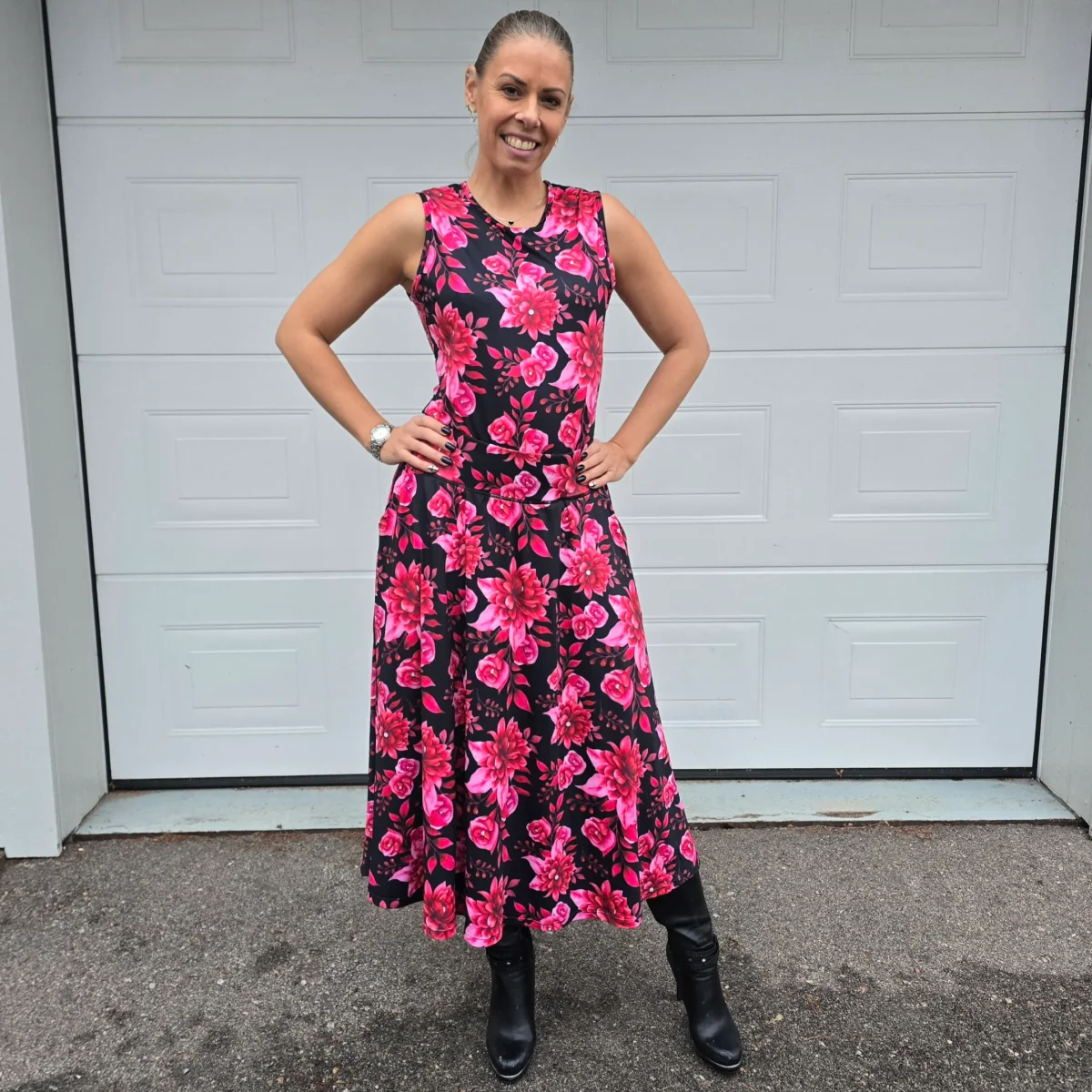 Snyggt blommigt linne på svart botten som passar lika bra till vardags som till träning. Fin under kavaj. Passformen är regular, vill du ha ett tajtare linne kan du gå en storlek nedåt.